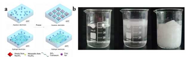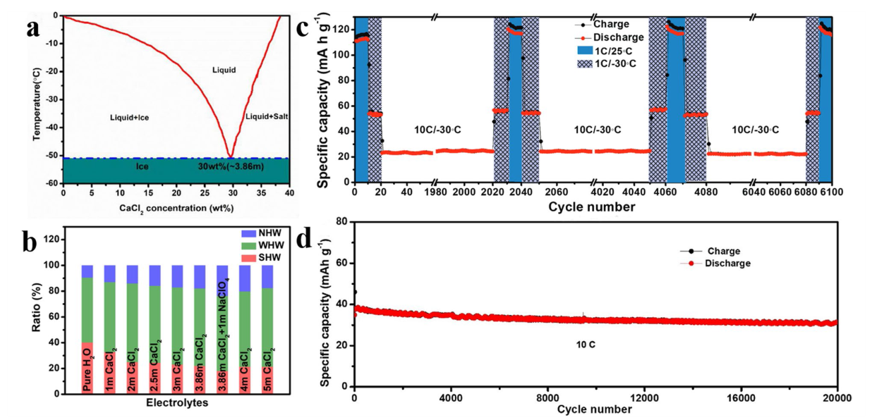 24]. (2) Electrolyte solidification and Low ionic conductivity: when the temperature approaches the freezing points, water molecules bind together through strong hydrogen bonds, reducing fluidity, enhancing electrolytes viscosity, and hindering the mass transfer process [