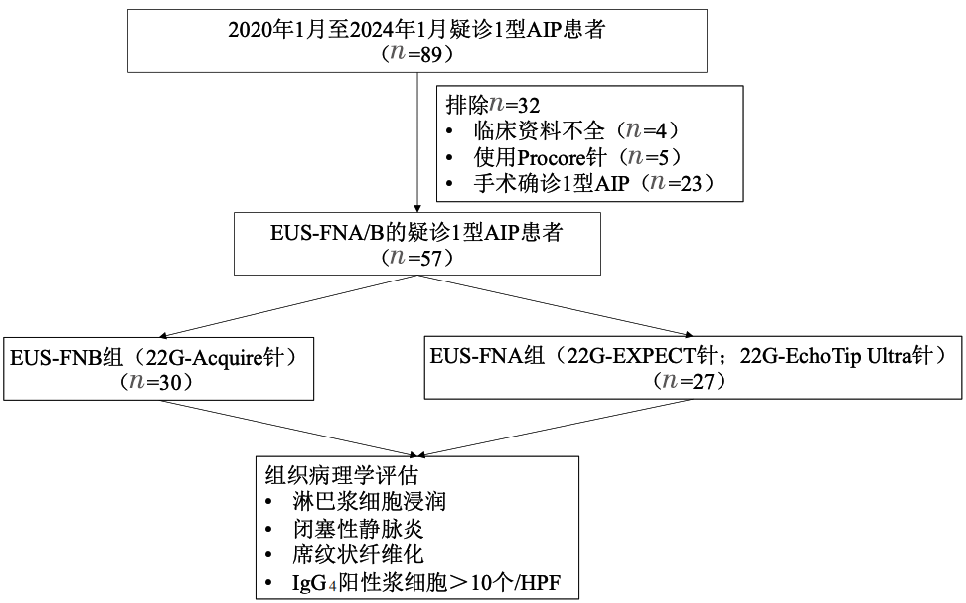 SHEN Xiaonan, ZHOU Chunhua, ZHANG Benyan, GAO Lili, ZHANG Ling, HE Xiangyi, LIU Chenxiao, ZHANG Xianda, ZHANG Yao, WU Wei, GONG Tingting, ZHANG Tianyu, LIU Lei, ZOU Duowu, ZHANG Minmin. Comparative study on diagnostic performance of Acquire fine-needle biopsy and fine-needle aspiration in endoscopic ultrasonography-guided tissue acquisition for type 1 autoimmune pancreatitis[J]. Journal of Diagnostics Concepts & Practice, 2025, 24(05): 498-504.