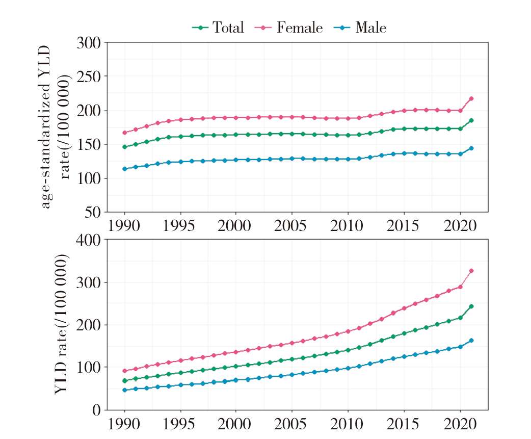 Figure 12 Changes in YLD rates of AD and other demen-tia in China from 1990 to 2021