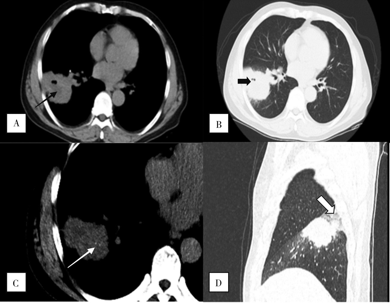目的:探讨SMARCA4 缺失型非小细胞肺癌(SMARCA4-deficient non-small cell lung cancer, SMARCA4-dNSCLC)的临床与CT影像特征。方法:回顾性收集我院2018年1月至2022年1月期间经组织病理学证实的SMARCA4-dNSCLC患者,以同期收治SMARCA4表达完整的非小细胞肺癌(SMARCA4-intact non-small cell lung cancer, SMARCA4-iNSCLC)患者作为对照组。观察并记录SMARCA4-dNSCLC的临床资料与CT表现,并与SMARCA4-iNSCLC组比较。结果:共纳入SMARCA4-dNSCLC组42例,SMARCA4-iNSCLC组43例。SMARCA4-dNSCLC组男性、吸烟者及患慢性阻塞性肺疾病者比例更高。SMARCA4-dNSCLC组较SMARCA4-iNSCLC组更易出现上腔静脉综合征,而SMARCA4-idNSCLC组更常见咯血。CT表现上,SMARCA4-dNSCLC组肿瘤密度相对更均匀,囊变、坏死及钙化更少见,边界更模糊,且伴发阻塞性肺炎/肺不张比例较低。结论:SMARCA4-dNSCLC多见于老年男性,重度吸烟者,常伴有慢性阻塞性肺疾病。病灶好发于两肺上叶。CT多表现为密度相对均匀的软组织占位,边界不清,无囊变或坏死,罕见钙化。增强后不均匀强化。纵隔淋巴结转移常见。具备上述临床与CT特征者应警惕这一独特亚型的可能。
