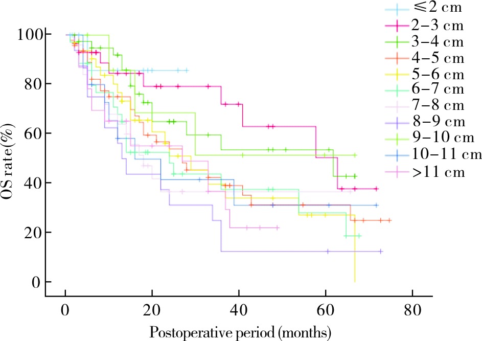 | Cut-off (cm) | Log-rank OS P value | COX HR-OS(95% CI) |