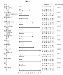 | 脉管癌栓 | 2.36 | 1.16~4.80 | 0.018 | 1.21 | 0.57~2.56 | 0.616 | |