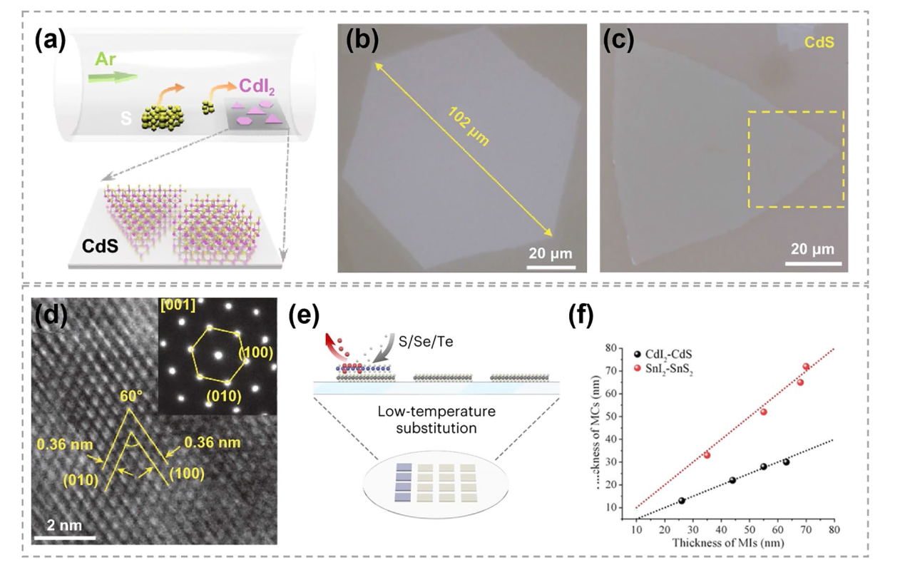 K.Zhang, Y.She, X.Cai, M.Zhao, Z.Liu et al., Epitaxial substitution of metal iodides for low-temperature growth of two-dimensional metal chalcogenides. Nat. Nanotechnol. 18, 448-455 (2023).