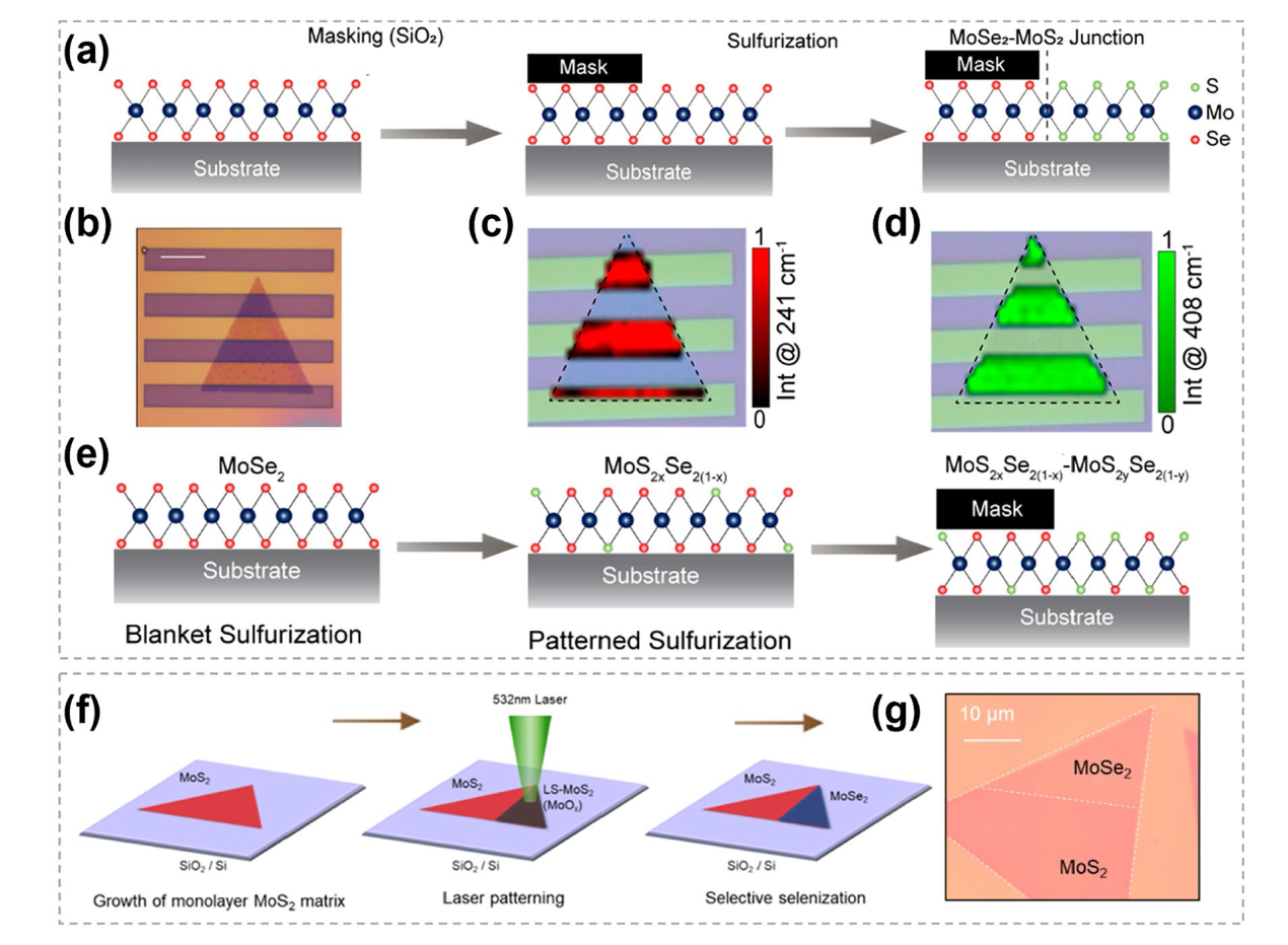 X.Wang, B.Wang, Y.Wu, E.Wang, H.Luo et al., Two-dimensional lateral heterostructures made by selective reaction on a patterned monolayer MoS2 matrix. ACS Appl. Mater. Interfaces13, 26143-26151 (2021).