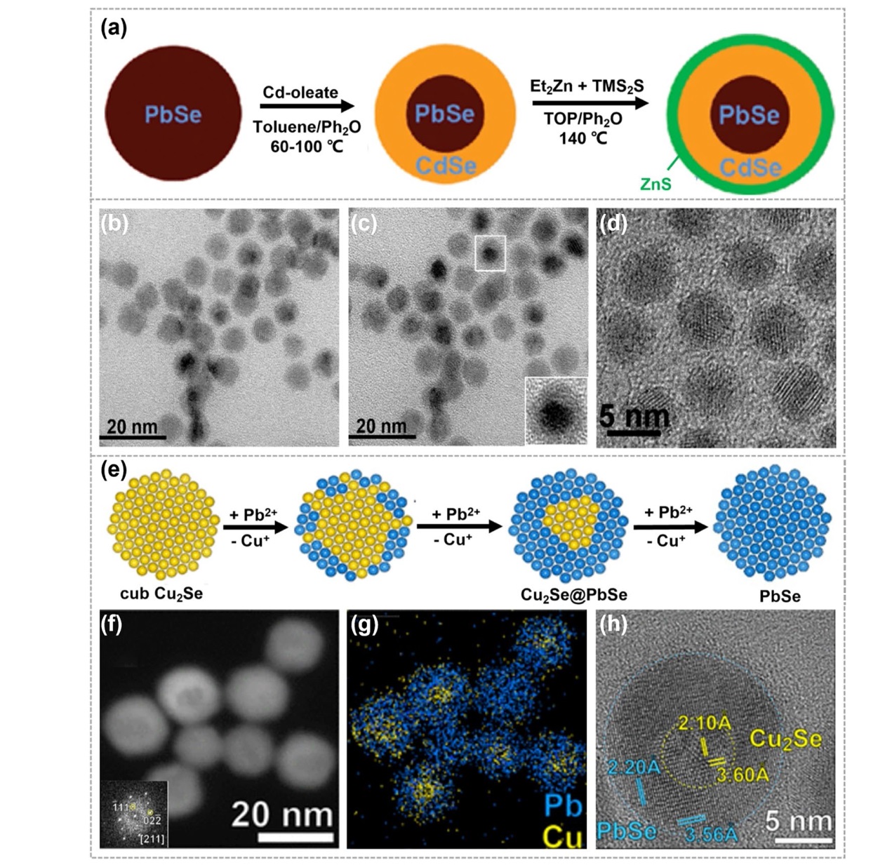 E.Groeneveld, L.Witteman, M.Lefferts, X.Ke, S.Bals et al., Tailoring ZnSe-CdSe colloidal quantum dots via cation exchange: from core/shell to alloy nanocrystals. ACS Nano7, 7913-7930 (2013).